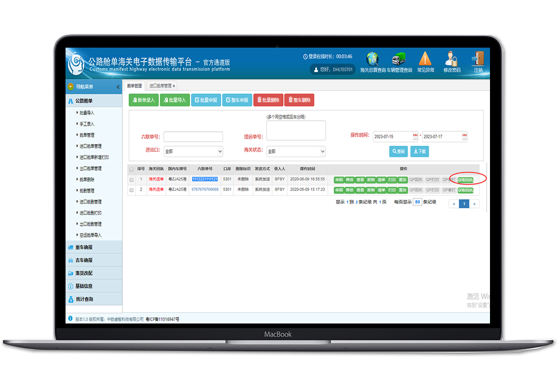 公路舱单海关电子数据传输平台简介